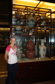 This was the beautiful entrance to the museum with a carved pillar and a painted ceiling. In the museum there was this beautiful golden buddha statue, some ceramic pottery and lots of jade sculptures.